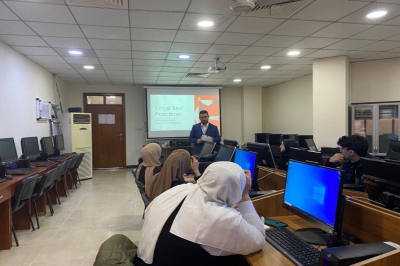 On the 8th of December 2021, the Career Development Centre CDC at the University of Zakho held the third course on ( How to Create an Email, Ways of Using it, and How to Send Data). The course was held at the Faculty of Humanities and presented by the coordinator of the CDC (Mr. Ahmad Loqman). The purpose of this course is to develop the students' skills in using internet information and technology. It is worth mentioning that, this was the third course presented by the Career Development Centre. Around 20 students participated in this course. Moreover, the final course is going to be held on next Wednesday 15th of December 2021, and the certificates will be distributed to the students on the same day.