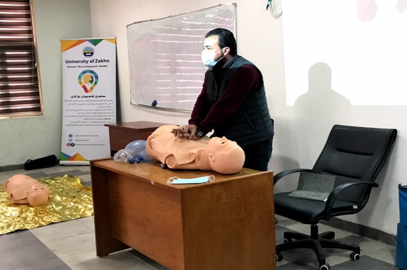 The Career Development Centre CDC at the University of Zakho started its first course in Basic Nursing Training, on Sunday 23rd of January. This course was organized in collaboration with the Directorate of Zakho Health and the University's Directorate of Safety and Health. The course contains practical and theoretical subjects related to First Aids and Basic nursing.