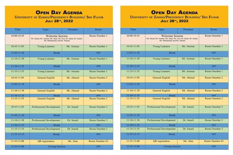 In the presence of Dr. Randall Rhodes, the President of the American University of Kurdistan, Dr. Karwan F Sami, the Vice President of the University of Zakho for Students Affairs, Mrs. Loucine Hayes, the Director of Center for Academic and Professional Advancement, Mr. Ivan H. Murad, the Director of Language Center, Dr. Sattar Jabbar Haji, the Director of Pedagogical Training and Development Center, and CAPA staff, on July 28th, 2022 the Open Day event was successfully conducted.
