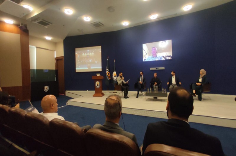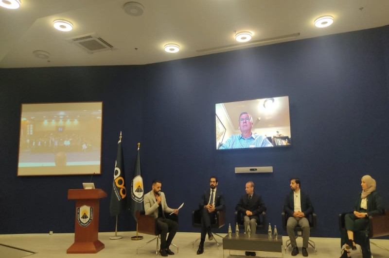 After the introduction, a panel discussion was held by Dr. Randal Rhodes, Mr. Amed Latif, Mr. Raffi Simonian, Dr. Dara Sherwani, and Ms. Sinbl Yakoob. The panel was moderated by Jarjis Imad. During the panel discussion, questions on how to motivate people to do project management, how to manage huge facilities, and the difference between the culture of project management abroad and in Kurdistan were discussed and answered.