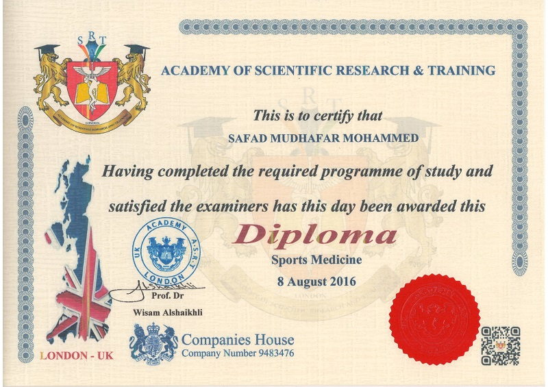 On the 5th -8th of August, 2016. Mr. Safad Mothafar Mohammed, lecturer at the University of Zakho, participated in the International Course of Sports Medicine and First Aid On a European level, the event was sponsored by the Sports Medicine Union of Kurdistan Region/Erbil.