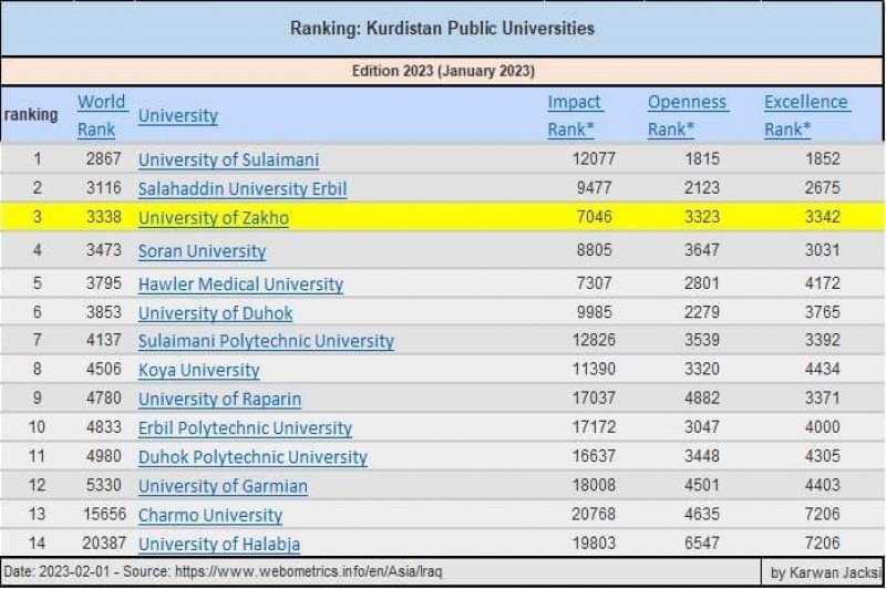 According to Webometrics, for the thirteenth time in a row, the University of Zakho achieved a new advancement in the university rankings worldwide.