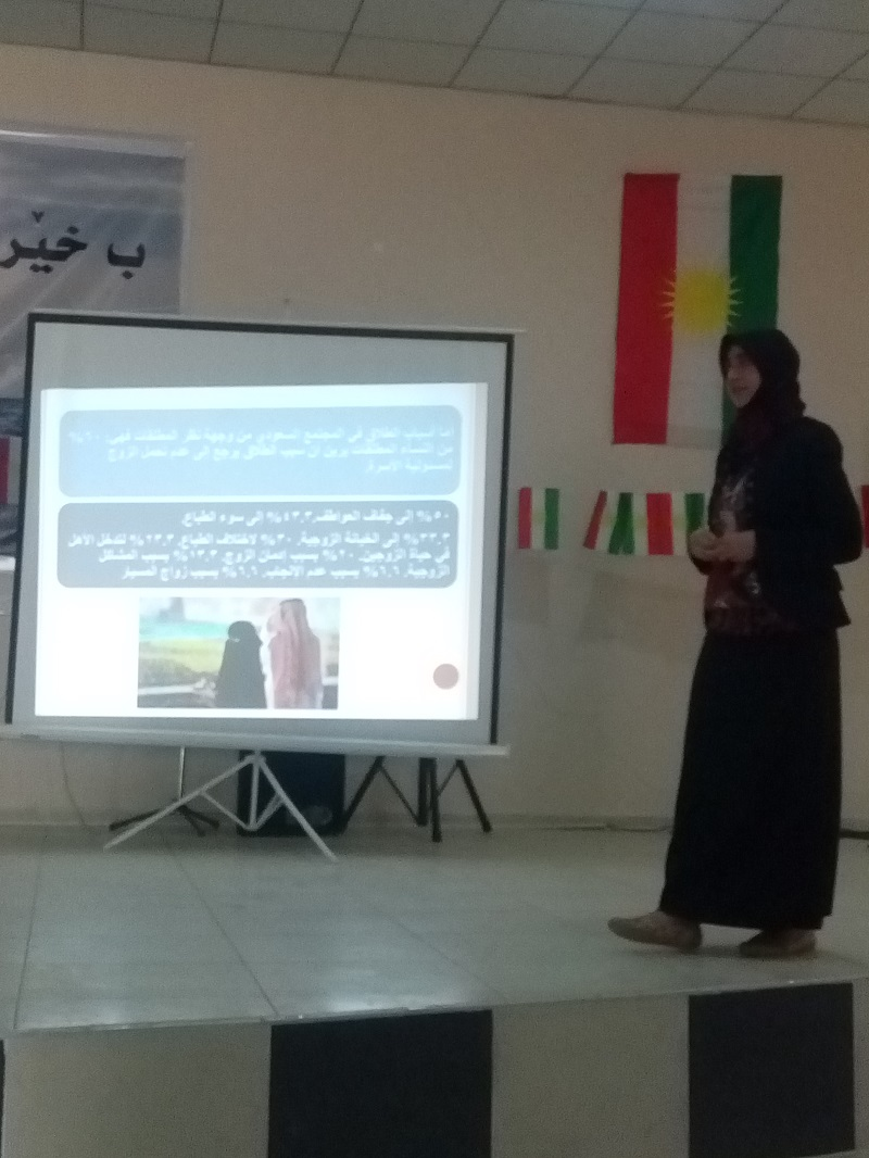 "Marriage is a Life Project" is a project held by both organizations, NLP and Kshbon in collaboration with University of Zakho, and under the supervision of Dr. Abdulraheem Maqsood and Mrs. Jihan Omer, lecturers at department of Psychology at UOZ, and some other psychologists from Kshbon organization. The project included a course under the title” How to Obtain a Successful Marriage Life?”. The course started on Thursday, the 1st of August, 2016 at the Conference Hall of Domiz camp, from 11:00 a.m_12:00 p.m. every Thursday and will continue until 29th of December,2016. Moreover, the course is more helpful for the young engaged and married couples as it paves the way to reach a successful marriage. In addition, on Thursday, the 22nd of September, 2016 at Domiz Campus, Mrs. Jihan Omer with Dr. Abdulraheem Maqsood presented a seminar entitled " Divorce, The reasons and The Side Effects It Reflects on The Society."