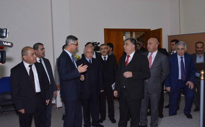 At the beginning of the visit, the Minister took a walking tour of the campus, in particular the scientific departments (Biology, Chemistry, and Physics Departments) and was given a description of the respective buildings by the members of the University Council. Afterwards, two presentations were given; the first one by the Vice President for Scientific Affairs and Postgraduate Studies, Prof. Dr. Omar Al-Habib about the situation of the university and its scientific progress. The second presentation was given by Asst. Prof. Dr. Yaseen T. Mustafa, the Director of the Information and Communication Technology Center at the University of Zakho. The subject of this presentation was the technological system and thus the progress of the University of Zakho.