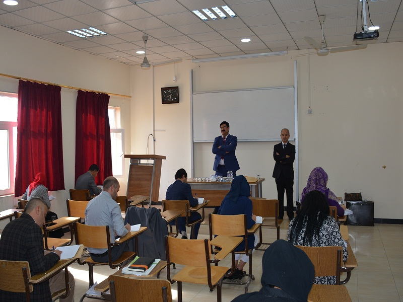 On Tuesday, the 8th of November, 2016, at 10:00 a.m. The examinations Halls of the University of Zakho witnessed the efficiency test for doctorate study for the academic year 2016-2017 and in the presence of the president of the university, Assist. Prof. Dr. Lazgin Abdi Jameel, and Assist. Prof. Dr. Yaseen Taha Mustafa, the vice president for the scientific affairs and postgraduate studies, Dr. Dyar Abd-ALkarim Saed, dean of the Faculty of Humanities, Dr. Ahmed Alsafar, dean of the College of Business and Management, along with the heads of the departments and committees of postgraduate studies of the faculties.