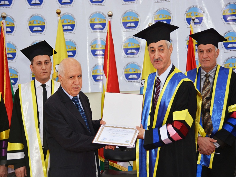 At the end of the ceremony, Assist. Prof. Dr. Lazgin Abdi Jameel, gave a speech praising Prof. Dr. Omer AL-Habib, previous vice president of the university for the scientific affairs and postgraduate studies, for the important role he had at the university and the unlimited efforts he has given serving the university both ; in academic and scientific fields.
