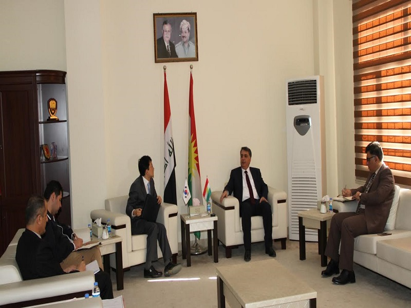 On Monday, the 28th of November, 2016, a meeting was held in the ministry hall between the minister of higher education and scientific research KRG, Dr. Yusuf Goran, and the consul of South Korea in Kurdistan region, Mr. Park Yung Kio, in the presence of Dr. Amanj Saed, advisor of the minister of higher education and scientific research KRG, and Dr. Khatab Shikhany, general director of the departments of Business and Management.