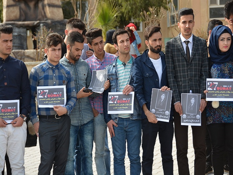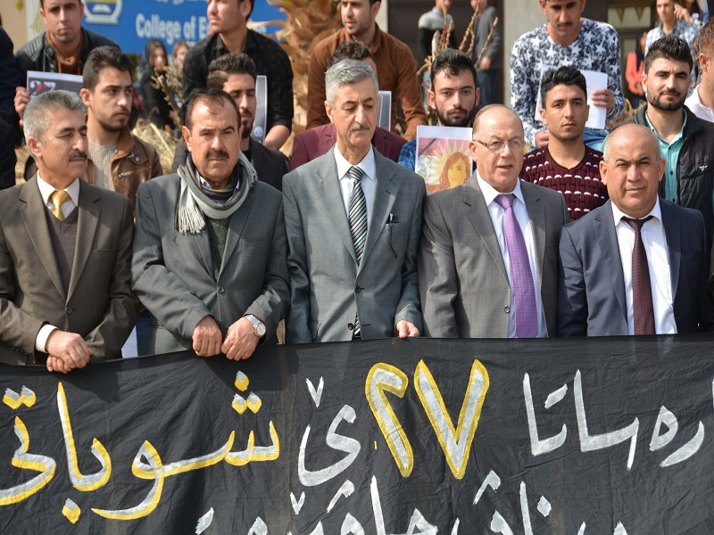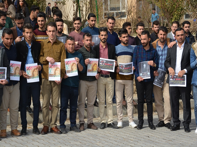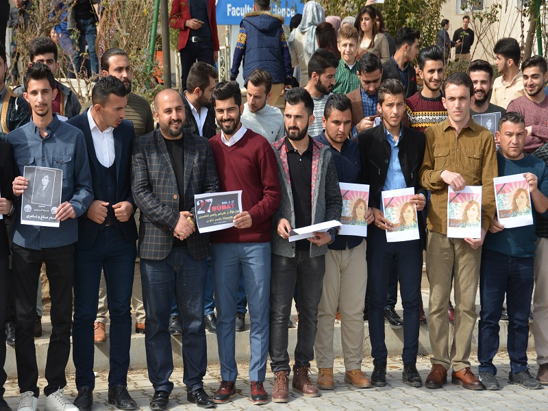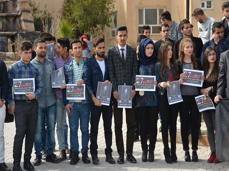 On Monday, February 27, 2017 at 11:00 am, in the presence assist. Prof. Dr. Lazgin Abdi Jamil, President of the University of Zakho, vice-presidents, deans of the colleges, teachers and students of the University of Zakho, the Commemorate of the tragedy of 27th February at the arena of the Faculty of Humanities,University of Zakho was held. On this occasion, staff and students of the University of Zakho showed their deep sorrow and sadness for the martyr journalists and wished Almighty Allah to bless her soul in the heaven and give patience to their families and co-worker of Rudaw channel, because she fell during the war between Iraqi forces and ISIS terrorist group in the city of Musil.