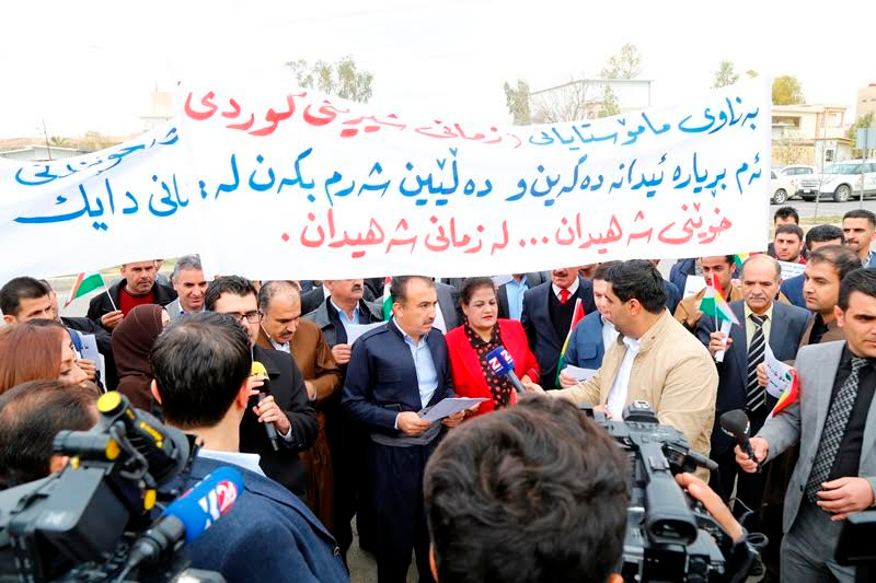 In this demonstration, which was organised on Wednesday, 15th of March, 2017, the protesters read a paper and in that paper, they requested the council of Higher Education and Scientific Research to rethink and pay a greater attention about " calculating the total marks of Kurdish language and Arabic according to their desires "