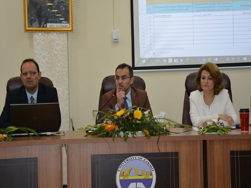 On Wednesday, 5th April, 2017, at 12:00 pm, in the presence of Asst. Prof. Dr.Yaseen T. Mustafa, Vice President for Scientific Affairs and Postgraduate Studies, Dr. Shlair Th. Noraldin, Director of Quality Assurance; the ICT & Statistics Center at the University of Zakho organized a lecture entitled "Teaching and Managing the Ranking System at the University". This lecture designed for the heads of departments and their coordinators, under the direction of Mr. Karwan Fahmi, Director of ICT & Statistics Center. It is worth mentioning that Dr. Yaseen gave an explanatory picture about the subject of the lecture, speaking about the national university ranking. Then Mr. Karwan spoke in an academic and precise manner about the national ranking of universities and how to manage the ranking system at the university. At the end of the lecture, Mr. Karwan answered the questions of the audience. The attendees expressed their gratitude to Mr. Karwan for delivering this lecture, wishing for the continuation of these academic works for the purpose of scientific service.
