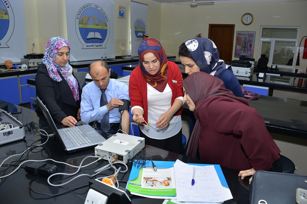On Monday 17th of April, 2017, at the Departments of Biology of the University of Zakho in collaboration with AD Instruments the ADI POWERLAB PHYSIOLOGY WORKSHOP was held. The workshop started with a brief comment on PowerLab Physiology Teaching System and the type of experiments that can be selected in various physiology disciplines such as human, animal, pharmacology, nursing, psychology, exercise physiology etc. The program included getting familiarized with Ultimate Teaching System, how to operate it and running some experiments on Human and Animal Physiology such as ECG, EEG, Neurophysiology of Frog”s nerve and recording compound action potential, Respiratory air flow, lung volumes and capacities as well as breathing rates. It is worth mentionning that these Data Acquisition Systems are only used in the undergraduate physiology lab in the University of Zakho and enable for the students to perform physiology experiments of International Standards.