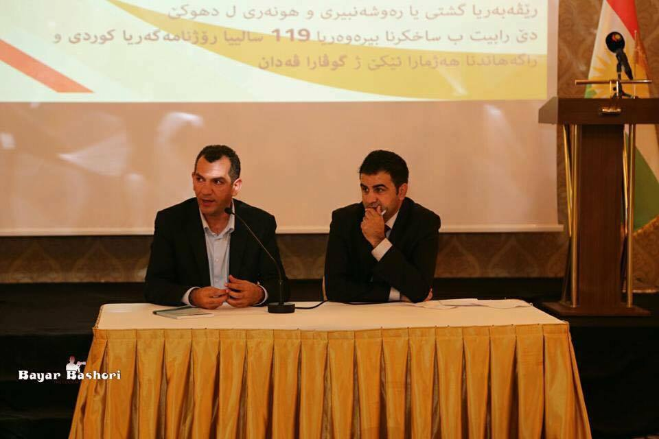 On Tuesday, 25th of April, 2017, at 11:00 am, the General Directorate of Culture and Arts in Dohuk Governorate at the Rixos Hotel celebrated the 119th anniversary of the Kurdish press under the motto "The 119th Anniversary of the Independent Kurdish Press in Words and Ideas". In the beginning, a minute of silence was observed in honour of the martyrs of Kurdistan. The opening ceremonies of the celebration began with the speech of Mr. Ayub Ramazan, general director of the general directorate of culture and arts. He talked about the history of the Kurdish press, and referred to the publication of the first Kurdish newspaper by the name of "Kurdistan", which was created by Kurdish intellectuals. On the other hand, he referred to the influence of the press in society and the role and efforts of journalists in the Kurdish society. After Mr. Ayoub finished his speech, Mr. Khoshnaf Jameel delivered a speech in which he referred to the stages of the development of Kurdish press and the importance of the press in society. He praised the efforts of Kurdish journalists and wished for further progress and success to them. After the opening ceremonies, the celebration began with the screening of a film about the history of the Kurdish press in the Bahdinan part until 2003. After that, the first number of "Vejan" magazine was announced by Aram Balatay and Saman Omar, who work in the secretariat of the magazine. It is worth mentioning that, Mr. Delir Kamal Ahmed, Research Assistant at the ICT & Statistics Center at the University of Zakho, was invited to the celebration by the general Directorate of the Culture and Arts as the official spokesman for the celebration. Mr. Delir has a distinguished collection of articles in the field of public culture and literature. He Participated in the magazine for the purpose of publishing his distinguished articles on behalf of the University of Zakho.