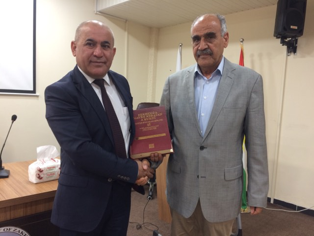 On Sunday, 14th of May, 2017 at 9:00 am, on the occasion of the 30th anniversary of the founding of the Kurdish Kurmanji group, of the Kurdish Institute – Paris. In the presence of Prof. Dr. Abdulwahab Khalid Musa, Vice President for Student Affairs, Deans of faculties and bodies, writers, intellectuals, lecturers, university students and the media. The 60th meeting of the Kurmanji group was held at the University of Zakho. The ceremony began with a speech by Prof. Dr. Abdel Wahab Khaled Musa; he welcomed the members of the meeting and the guests. Then, he spoke about the work and scientific plans of the University of Zakho. On the other hand, he pointed to the importance of preserving the Kurdish language and the Kurdish heritage, because they form the basis of the Kurdish identity of the West. After that, Mr. Rasho Zilan, the President of the Kurmanji group delivered a speech on behalf of the members of the Karamanji group, in which he expressed his thanks and gratitude to the University of Zakho for hosting the organisation of the 60th meeting of the Kurmanji group at the University of Zakho. On the other hand, he spoke about the history of the Kurdish struggle. At the end of his speech, he dedicated a book on the Kurdish struggle to Prof. Dr. Abdel Wahab Khaled Musa. It is worth mentioning that, the Kurmanji group, worked on their scientific plans and projects at the University of Zakho from 9:00 am till 6:00 pm for a week. The Kurmanji group of the Kurdish Institute in Paris organised twice meetings a year in different countries. The staffs of the University of Zakho are happy to present the 60th session of the Kurdish-Kermangi group at the University of Zakho.