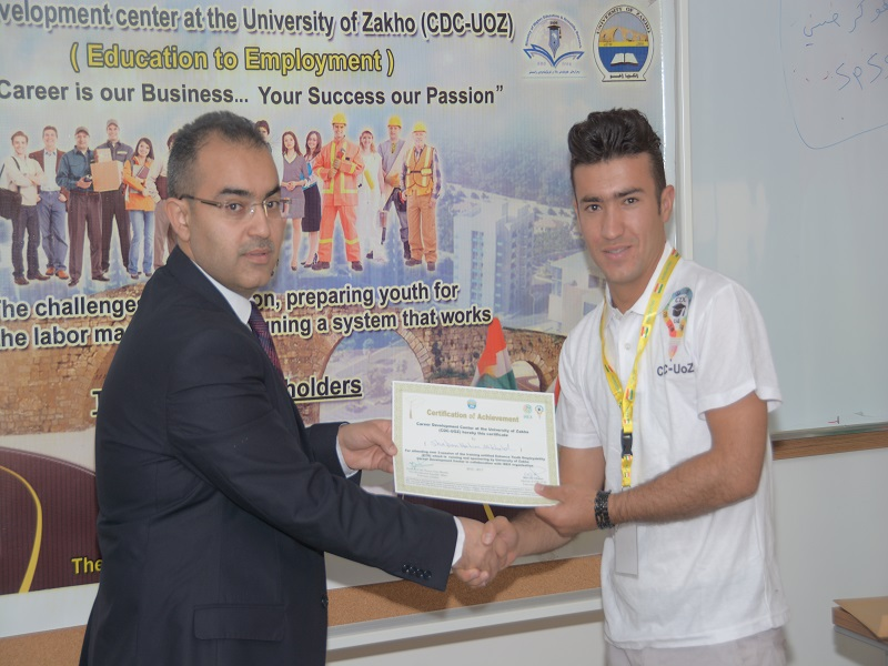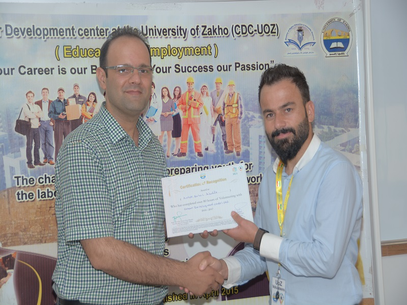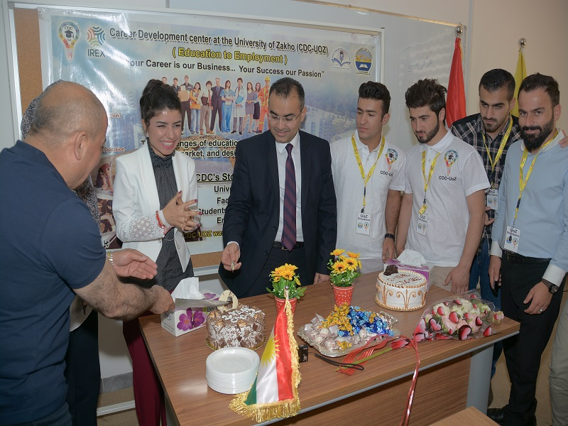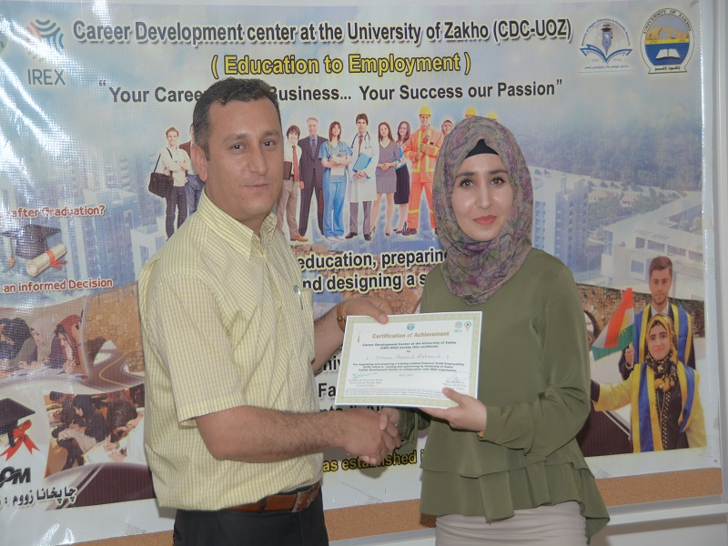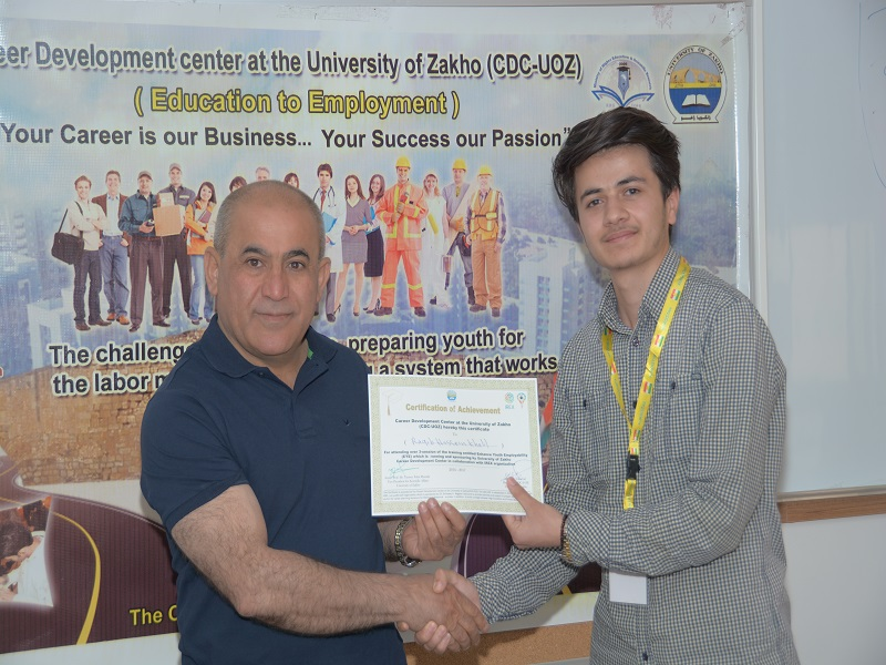 On Wednesday 24th of May 2017 at 12:00 pm, in the presence of the vice presidents, deans of the faculties and the directors of the centers at the University of Zakho, the Career Development Center at the University of Zakho celebrated the end of the EYE (Enhance Youth Employability skills) sessions. At the end of the event, certificates were distributed to those who have participated in more than three sessions. On the other hand, the Career Development Center also celebrated the second anniversary of the center with the presence of the Deans of Faculties and the directors of centers.