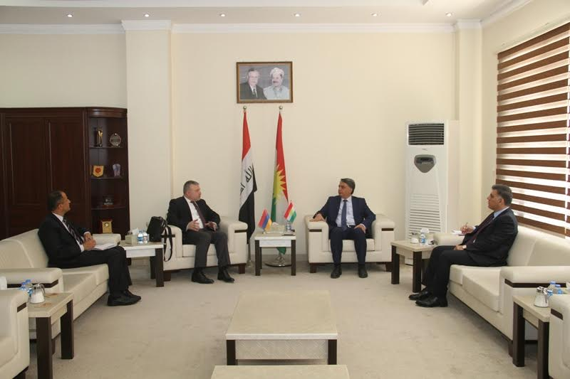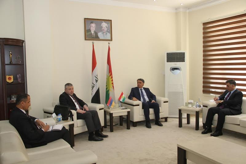 Media Directorate of the Ministry of higher education and scientific research: On Monday, 29th of May, 2017, Dr. Yusuf Goran, the Minister of Higher Education and Scientific Research received Karin Gregory, the Armenian Ambassador to Iraq. After that, Dr. Yusuf Goran, the Minister of Higher Education and Scientific Research, expressed the similarity of the history of the Kurdish people and the Armenian people in the purity of race and defence. Also, He pointed out his desire to strengthen scholarly communication between the two sides. Then, Karin Gregory, the Armenian ambassador to Iraq stated that: there are scores of students of foreigners and Iraqis study in the universities of Armenia. On the other hand, he pointed out the ways of strengthening scientific and academic relations between his country and the Kurdistan Region. For more information, please visit the following link: http://www.mhe-krg.org/ku/node/3548