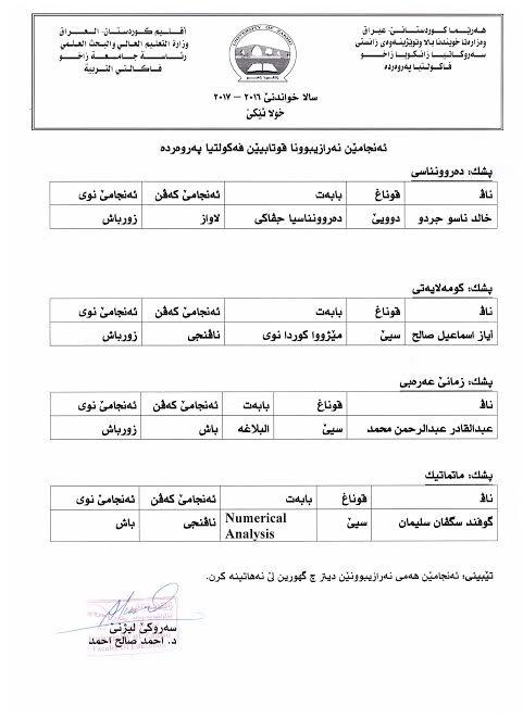 The examination committee announced the results of the objections of the students of the Faculty of Education for the academic year (2016-2017). To view the results, please click on the following link: Document Link