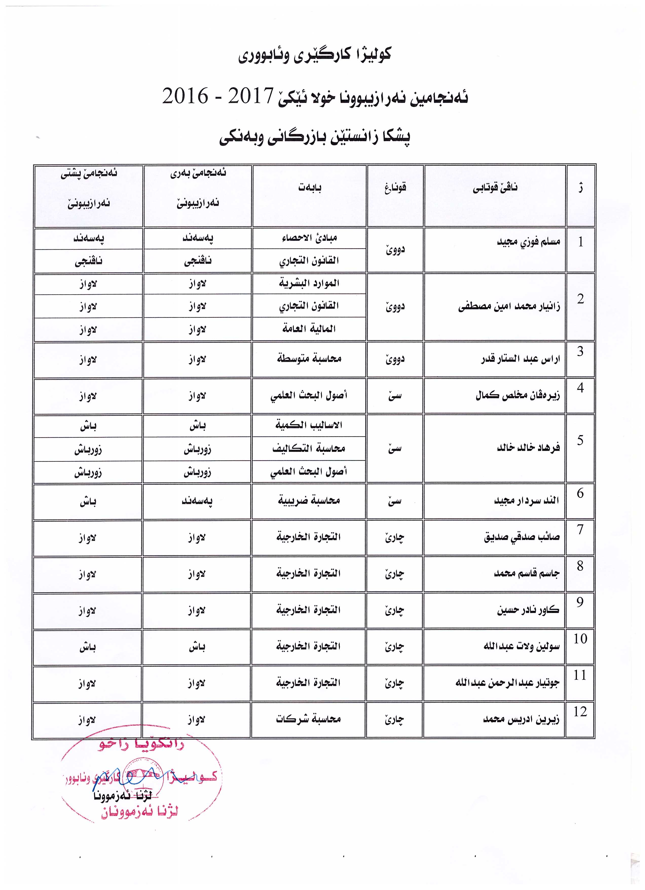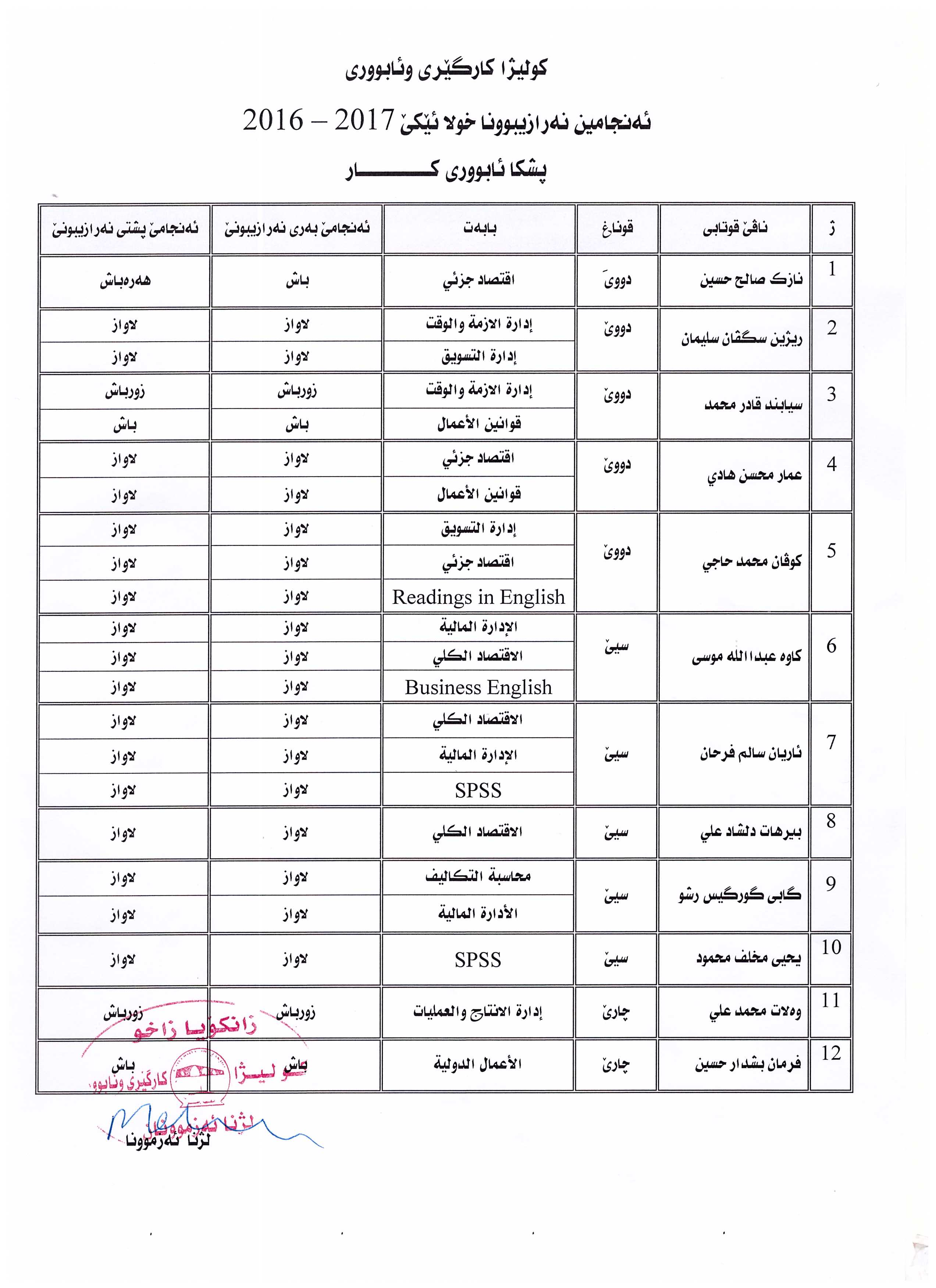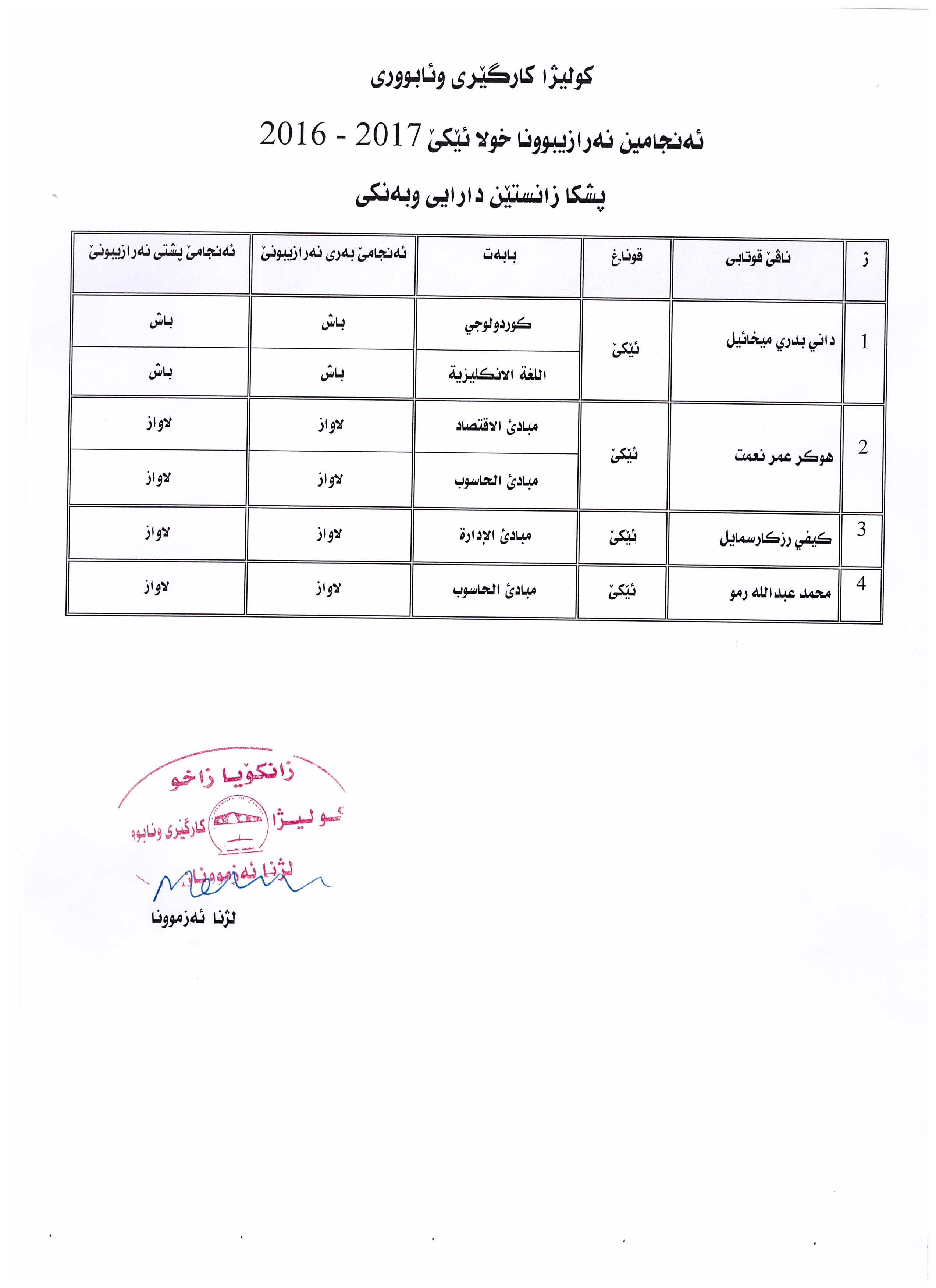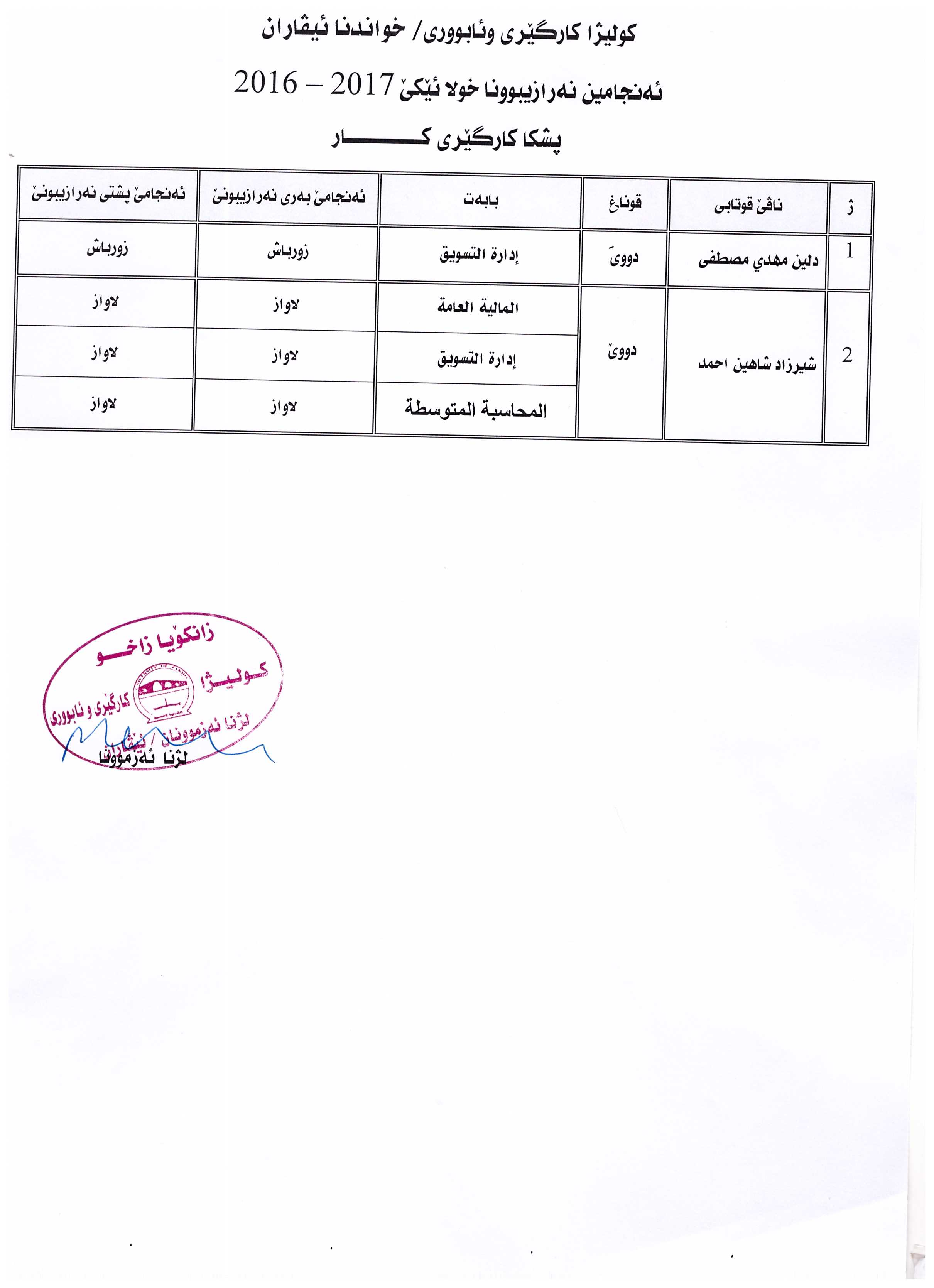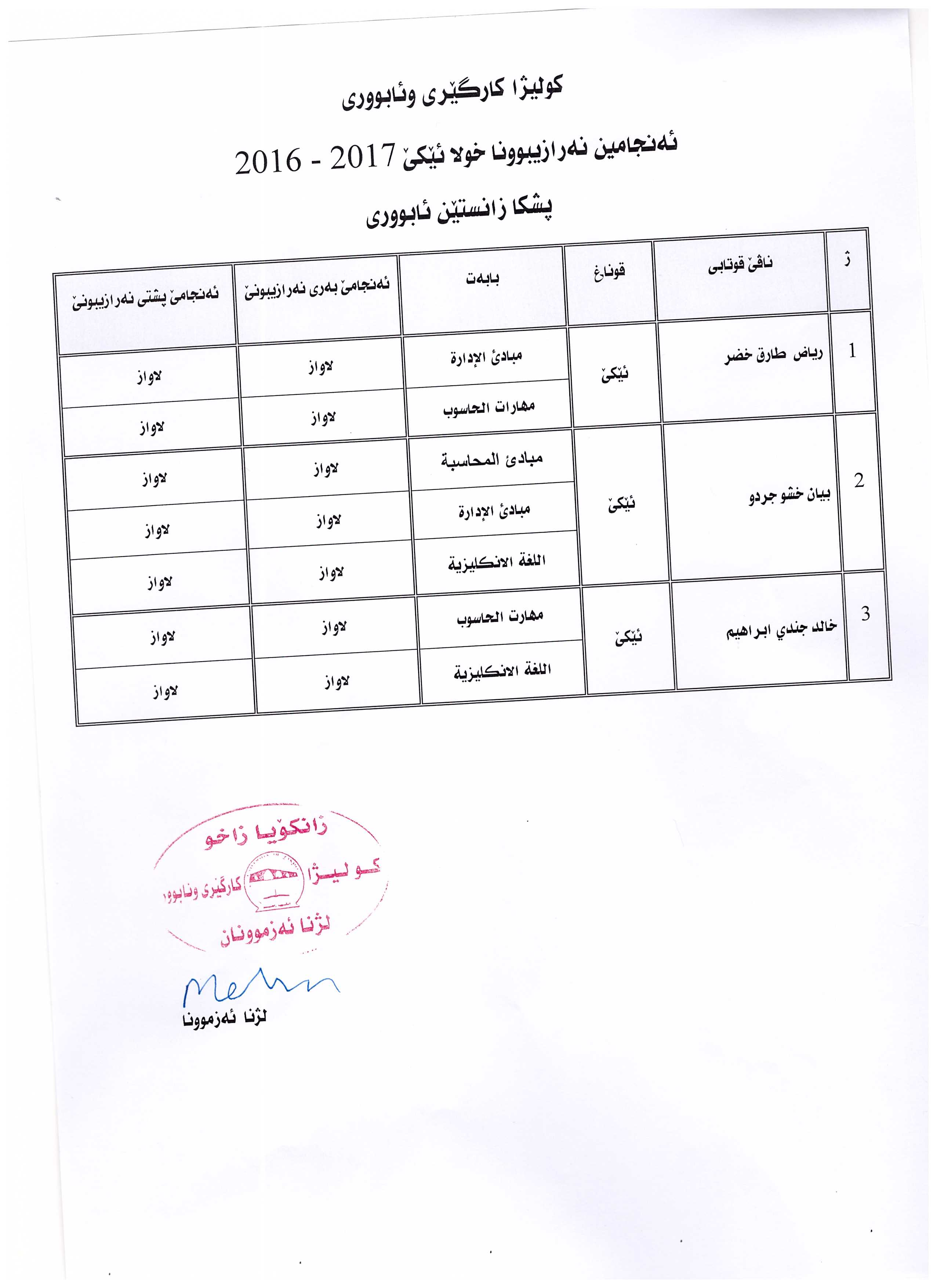 The College of Administration and Economic has announced the final results of students objection for the academic year (2016-2017). To see the results, visit the following link :