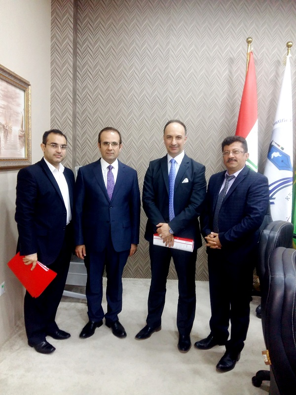 On 16th of July 2017, a delegate from the University of Zakho headed by Dr. Lazgin Abdi Jamil , the President of the University of Zakho, Dr. Yaseen Taha Mustafa, the Vise President for Scientific Affairs and Dr. Ahmad H. Ibrahim , the Director of the International Relations Office, and another delegate from the General Hospital in Zakho including Dr. Ali Sulaivani, Dr. Shakir Abdulrahman Jamal and Dr. Basheer Ali Abdi met with Dr. Amanj Saeed, the Adviser of the Ministry of Higher Education, and Dr. Ali A. Dabbagh the Dean of College of Medicine at Hawler Medical University. The aim of the visit was to discuss the ability of opening a college of medicine at the University of Zakho. The university staff along with the hospital staff and the labs will be available for the students of the college of medicine. Opening a medicine college will be a big step to cover the shortage in the number of doctors in the rapidly growing city of Zakho.