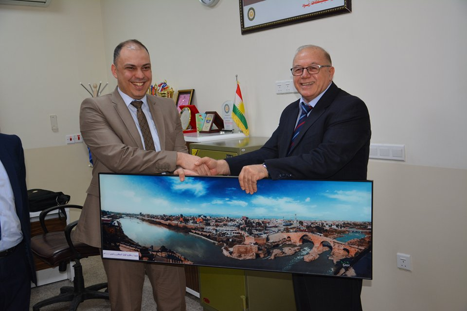 On Monday, January 29, 2018, at 10:00 am, a delegation from the College of Administration and Economics headed by the Dean of the college Assistant Professor Dr. Ahmed Safar, visited Jihan University in Dohuk province. The delegate was warmly welcomed by Assistant Professor Dr. Zerevan Abdul-Mohsen, the President of Jihan University and Dr. Saed I. Seleivani, a member of the council of the university.