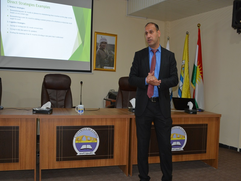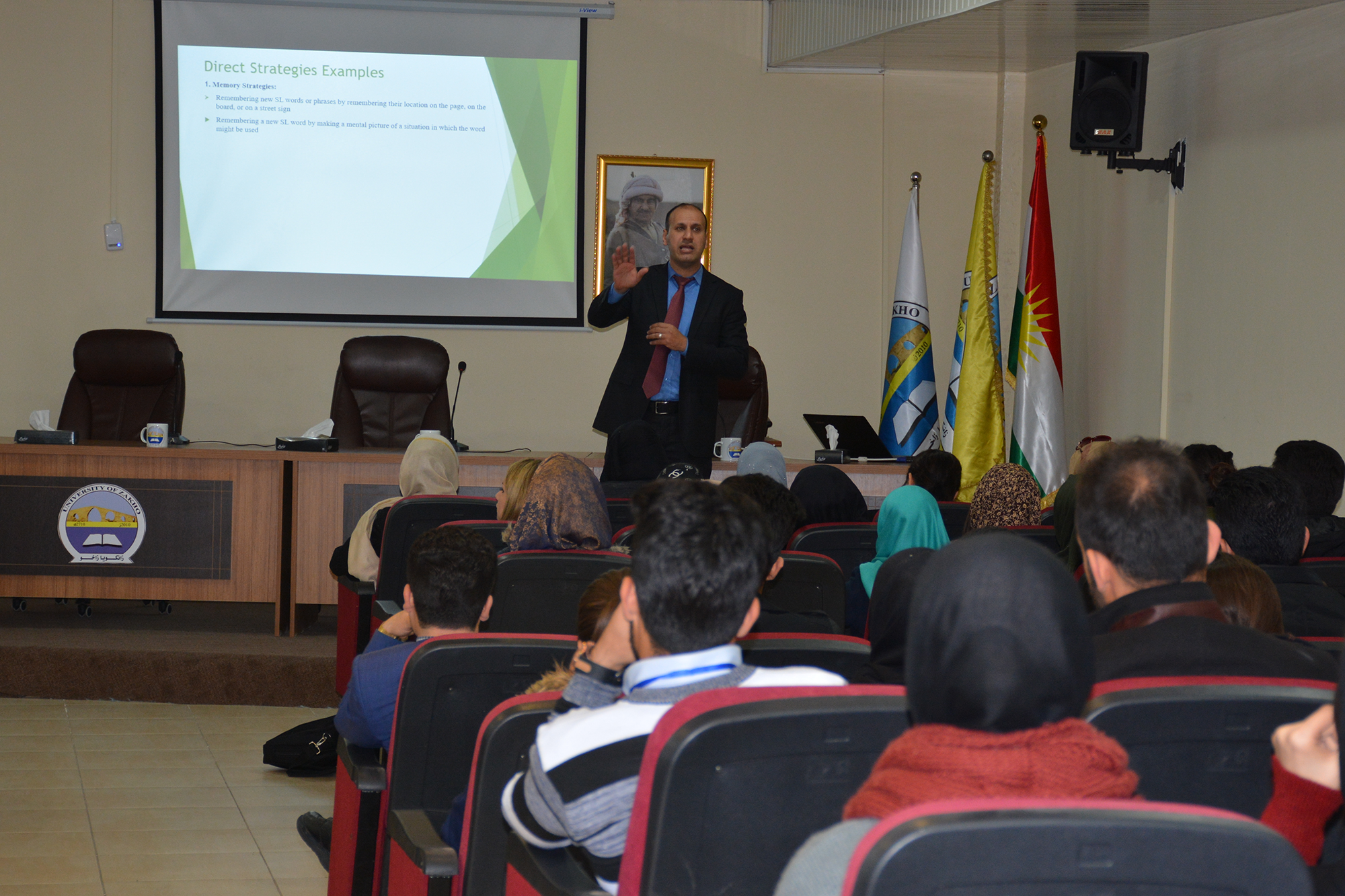 On Tuesday, February 27, 2018, as a part of weekly activities, English Department at the University of Zakho held a workshop at the Hall of Khalil Khayali for Mr. Hozan Gorgeen, Head of English Department, about the methods and strategies of learning languages, and the current methods being used to gain a particular language At the end of the seminar, the attendees asked questions and shared their views and opinions on the topic presented.