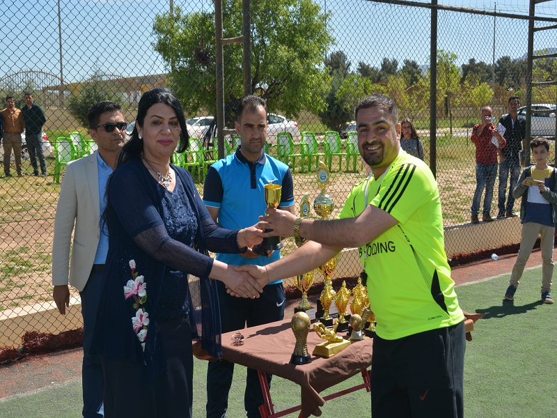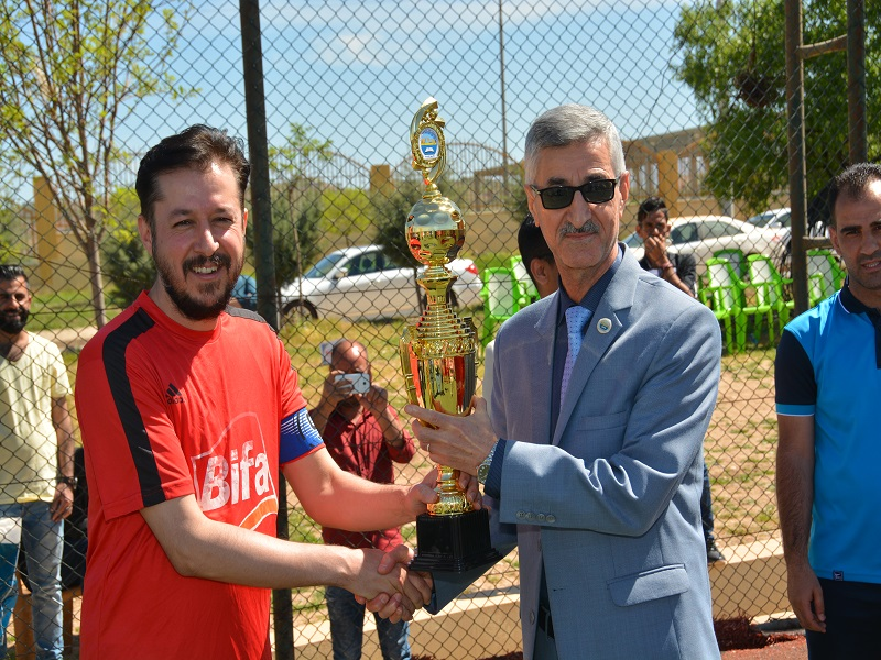 Under the auspices of Assistant Professor Dr. Lazgin A. Jameel, President of the University of Zakho and with the presence of vice presidents, deans of colleges, professors and university students, the football tournament which was organized by the Faculty of Education at Zakho University ended on Monday, March 26, 2018. The final match brought together the team of the Faculty of Humanities with the team of the Faculty of Education, in which the latter recorded three goals for two goals, thus won the championship title.