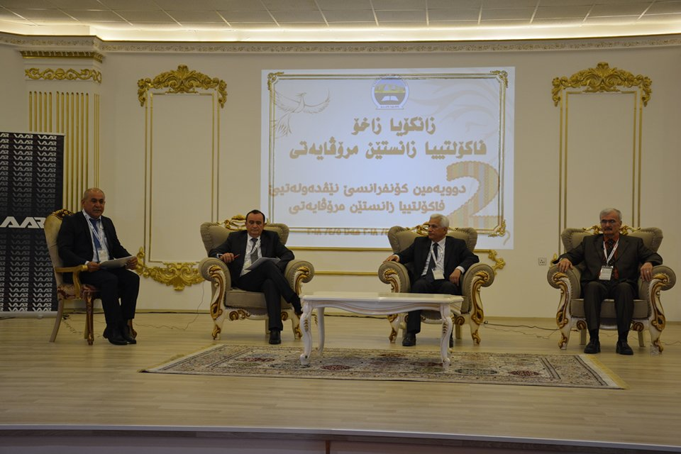 Under the auspices of the President of the University of Zakho, Asst. Prof. Dr. Lazgin A. Jamil, and with the presence of vices of the president, Minister of Culture and Youth in Kurdistan Mr. Khalid Musa, deans of the faculties, scholars, and university students, the Second International Scientific Conference was held at the University of Zakho. At the beginning of the conference, the attendees stood a minute of silence in honor of martyrs of Kurdistan with the national anthem "Ay Raqeb" being played. Then the panels of the conference were started by a speech delivered by Dean of the Faculty of Humanities, Assist. Prof. Dr. Diyar A. Saeed. In his speech, he warmly welcomed all guests, scholars, and lecturers of universities. Then he emphasized on the significance of the conference at the current situation, history of Kurds, stages it underwent, and talked in depth about "Culture, Dictionary, and Kurdish Literature". After that, Head of Kurdish Department, Assist. Prof. Dr. Hussein O. Abdul-Rahman, delivered his speech and explained many aspects of the conference, the date of its announcement, the process of accepting researches, and the number of researches that have been submitted from and outside Kurdistan region. At the end of his speech, he expressed his gratitude towards whose who helped in the arrangement and implementation of the conference. After the speeches, the conference's debate entitling "Kurdish Language and Its History" began at 11:45 am, with the participation of the Vice President of the University of Zakho for Students Affairs Prof. Dr. Abdulwahab Kh. Mosa, Minister of Culture and Youth Mr. Khalid Musa, Counselor of the Ministry of Education Assist. Prof. Dr. Ahmed Qarani, and Language Specialist at University of Sulaimani Prof. Dr. Hogar M. Faraj. It is worth mentioning that members of this debate shared their perspectives and had an academic and fruitful discussion. Then some lecturers of the University of Zakho, who gained their scientific tittle for the academic year 2016-2017, were awarded. In addition to this, library of the Faculty of Humanities was opened by the Minister of Culture and Youth in a special occasion at 12:30 pm. It is worthwhile to note that this library is a first electronic library in Kurdistan. Readers can get books they wishes and read it on their free time. The last panel was presented by Assist. Prof. Dr. Hussein O. Abdul-Rahman, at 4:00 pm, then the opportunity was given to attendees to share their opinions.