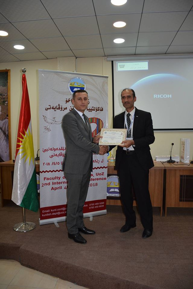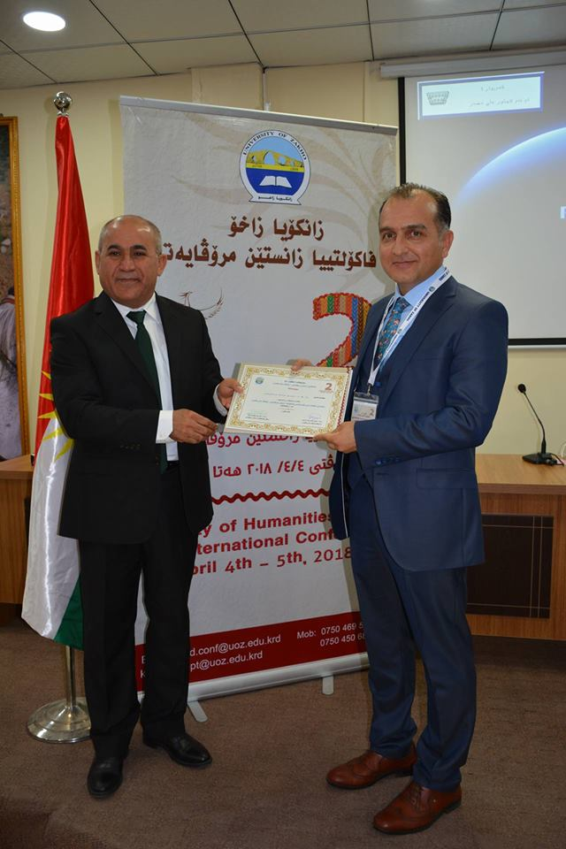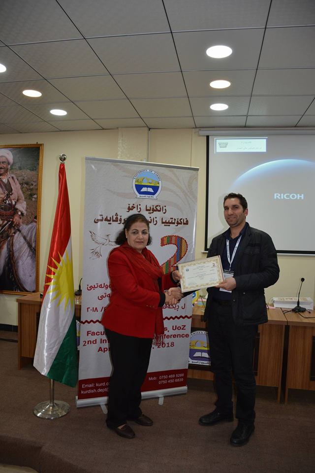 The conference started at 9:00 am with researchers from the University of Zakho presenting their researches academically on various topics. Then the opportunity was given to the attendees to share their views and perspectives on the topics. At the end of the panels of conference, a conclusion speech on the results and recommendations of the conference was delivered by Professor Dr. Abdul-Wahab Kh. Musa, Vice President for Students Affairs. Then certificates of appreciation were awarded to the participants of the conference.