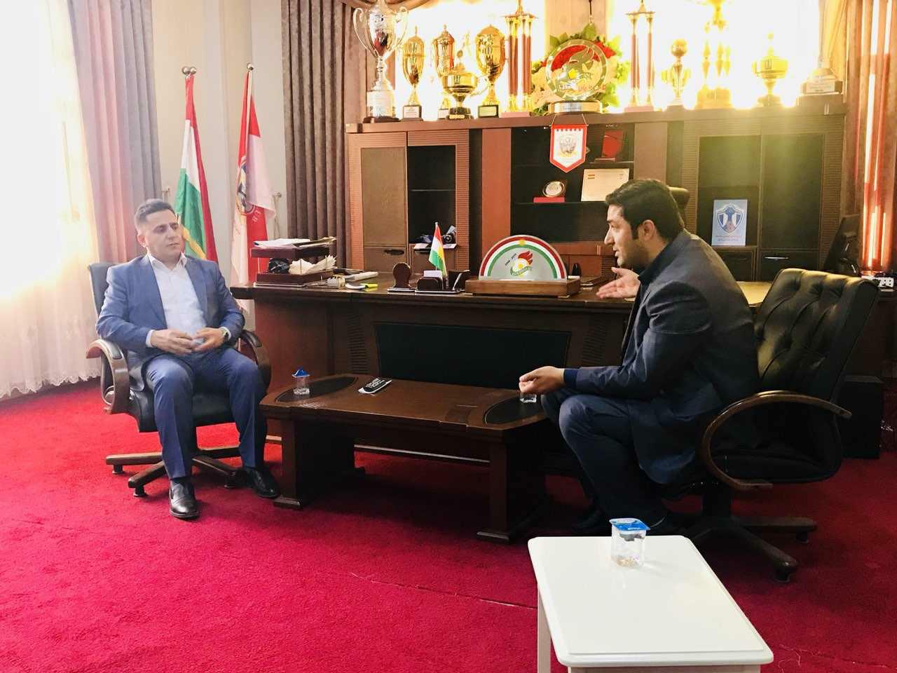On Sunday, April 8, 2018, a delegation from the University of Zakho headed by Dean of the Faculty of Humanities, Assistant Professor Dr. Sherzad Z. Mohammed, and professors at Sport Department Mr. Safad Muzar, Mr. Qahraman Nori, and Mr. Redeer Shafiq, visited Zakho Stadium with the aim of enhancing relationships, and they were welcomed by Mr. Barzan Mustafa, President of Zakho Team. In the visit, the Dean of the Faculty of Education showed his support to the Team of Zakho. On the other hand, both sides expressed their willingness for future collaboration.