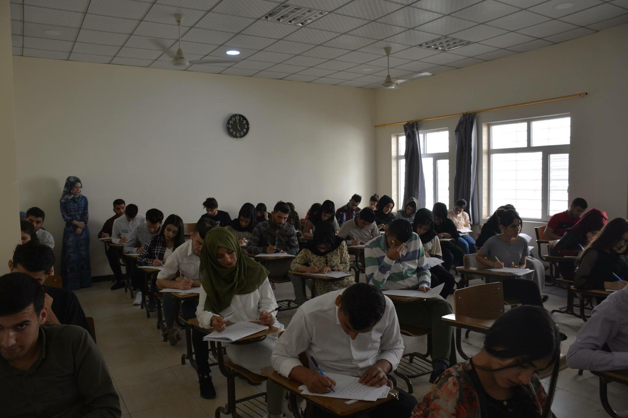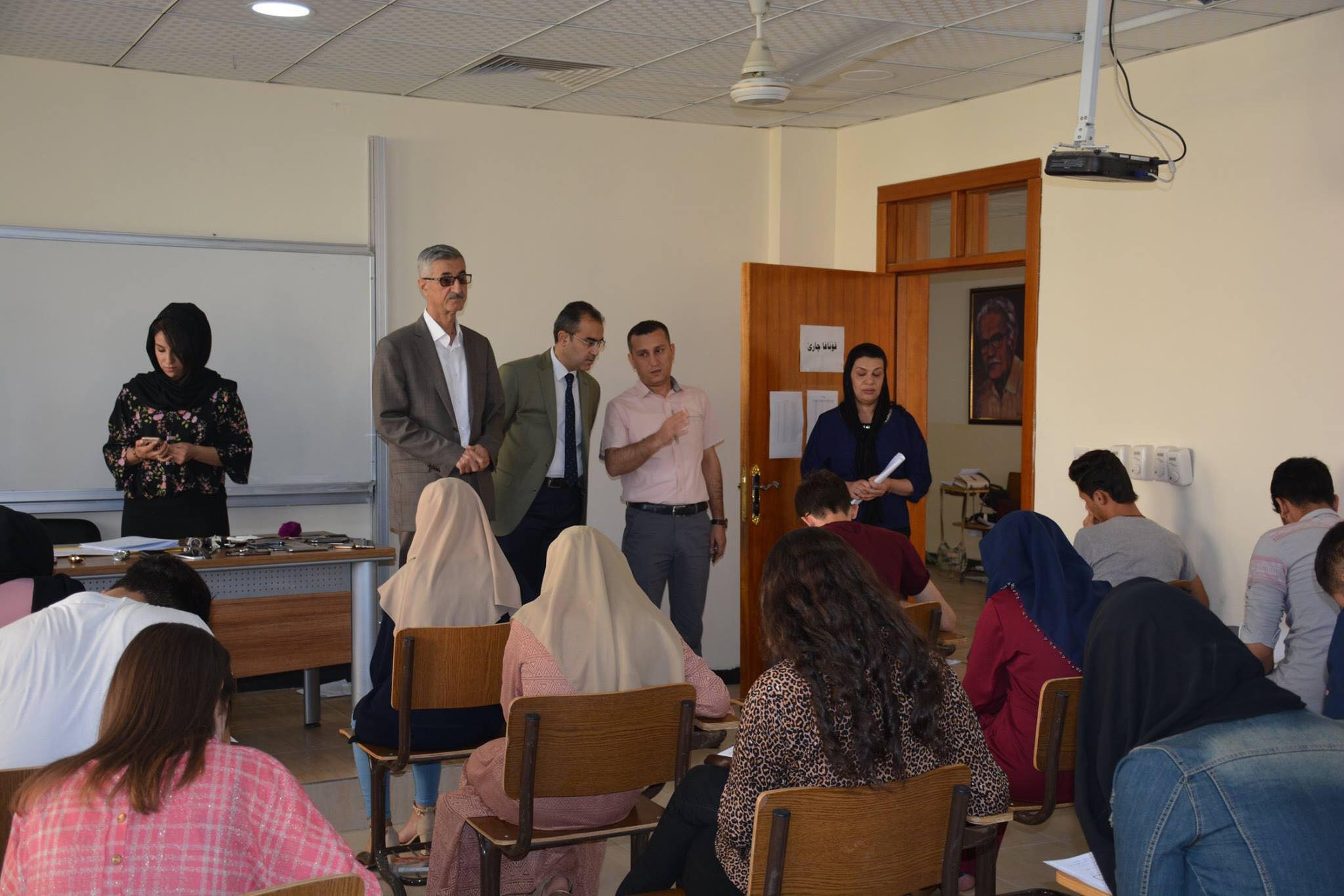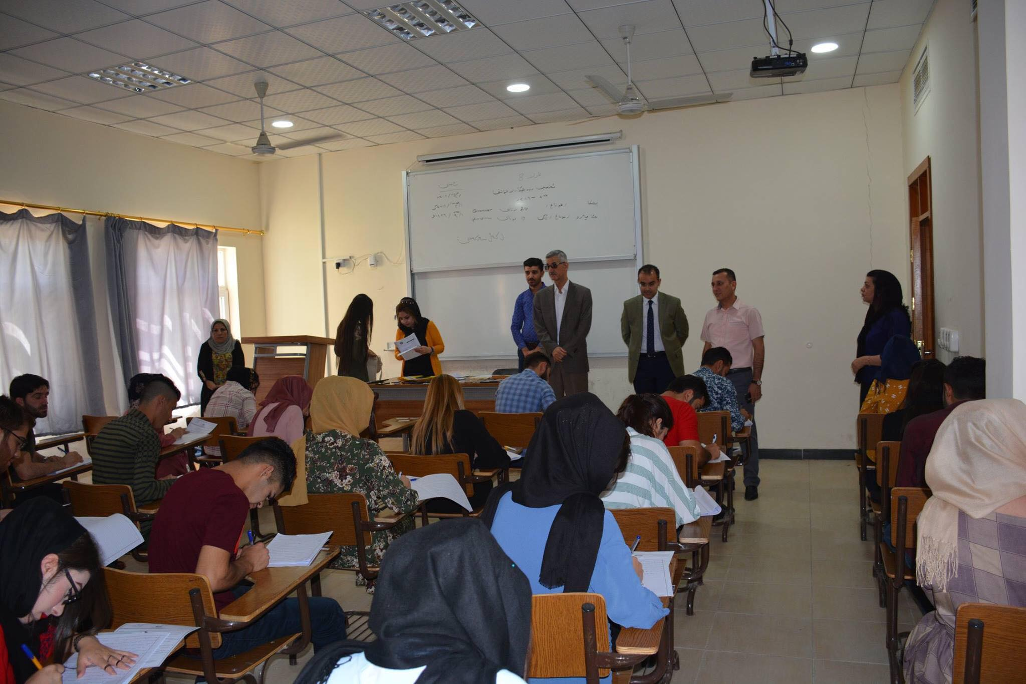 On Thursday, June 21, 2018, end of year exams of the second semester (first round) of the first stage students of Bologna System for the academic year (2017-2018) took place at the Faculty of Humanities in the presence of Assistant Professor Dr. Lazgin A. Jameel- President of the University of Zakho, Assistant Professor Dr. Yaseen T. Mustafa-Vice President of the University for Scientific Affairs and Postgraduate Studies, and Assistant Professor Dr. Diyar A. Saed- Dean of the Faculty of Humanities.