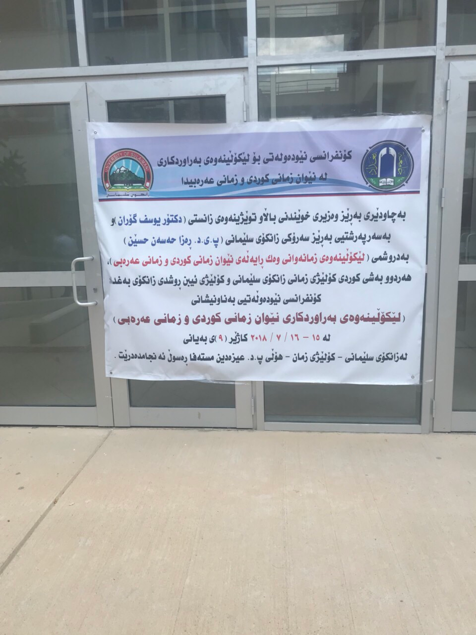 On Sunday, June 15, 2018, with the presence of Dr. Yousif Goran, Minister of Higher Education and Scientific Research-KRG, and in collaboration with University of Baghdad, Kurdish Department at University of Sulaimani organized a conference on "Comparative Studies Between Kurdish and Arabic Language". It is worth mentioning that two lecturers from the University of Zakho, namely; Ms. Zherwan S. Haji, and Ms. Fadia A. Khalid, participated in the conference with a research paper. They presented their research within the limited timeframe, and then the doors of discussion were opened for the audience to share their perspectives. In conclusion, it is worthwhile to mention that this conference was held for two days in the hall of Professor Dr. Ezadin M. Rasol, at the campus of the University of Sulaimani.