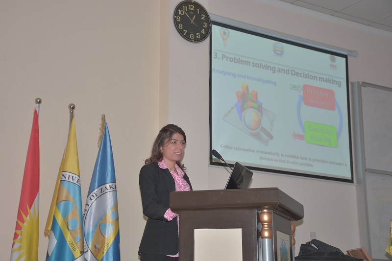The Career Development Center at the University of Zakho held two-seminars on the 16th of December 2015 at the Chemistry Hall of Faculty of Science at the University of Zakho. The first seminar was divided into two sessions. The first session dealt with Required Employability Skills and Soft Skills for the Job Market in the Private Sector, the second session with the Role of the Career Development Center at the University of Zakho for the University, Alumni, Employers, and Students. Both sessions were presented by Ms. Edi S. Kachal, the Director of the Career Development Center at the University of Zakho.
