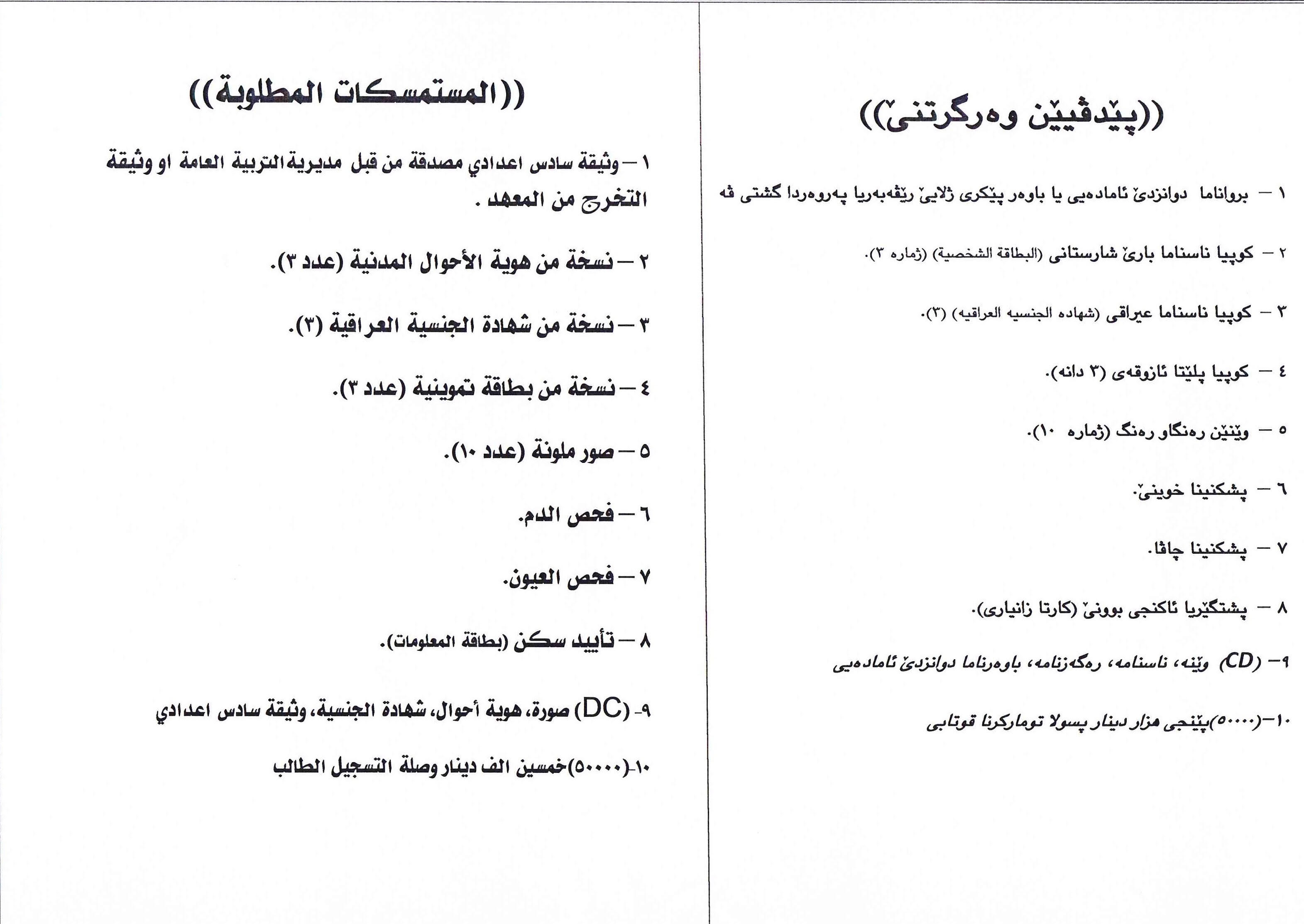 Directorate of Registration at the University of Zakho informs accepted students for the academic year 2018-2019 that registering names will start as of Wednesday, October 17, 2018, till Sunday, October 28, 2018. Students should bring the following documents with them: