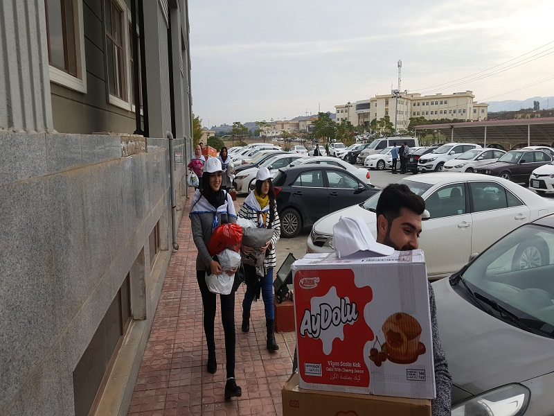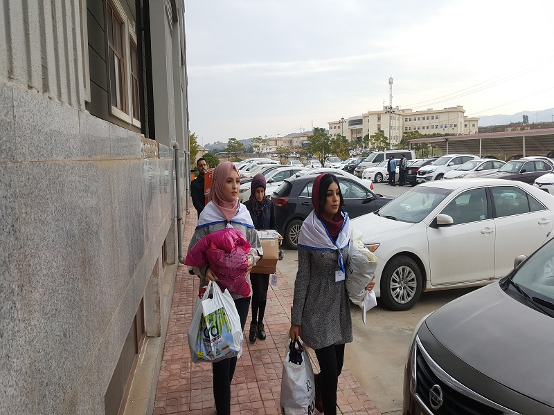 On Tuesday, November 27, 2018, at 11:00 am, in the presence of Ms. Dileen A . Meero-Director of the Career Development Center, staff, and volunteers of the center, the center organized a campaign to distribute clothes to the poor and needy people in the Zakho district. The two-month campaign was organized by the students Alaa Ahmed and Alaa Abdul Rahman.