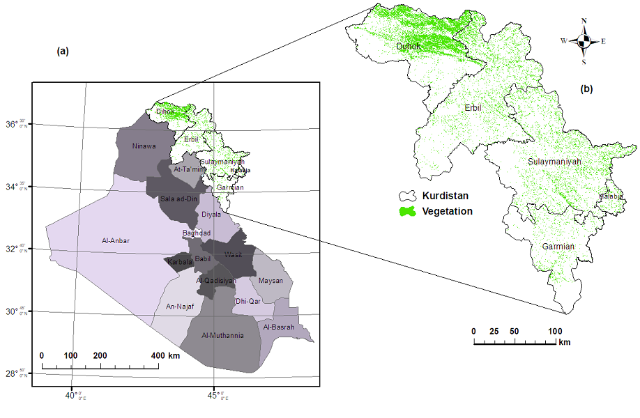 * Map and estimate the vegetation coverage for each district within Kurdistan Region;