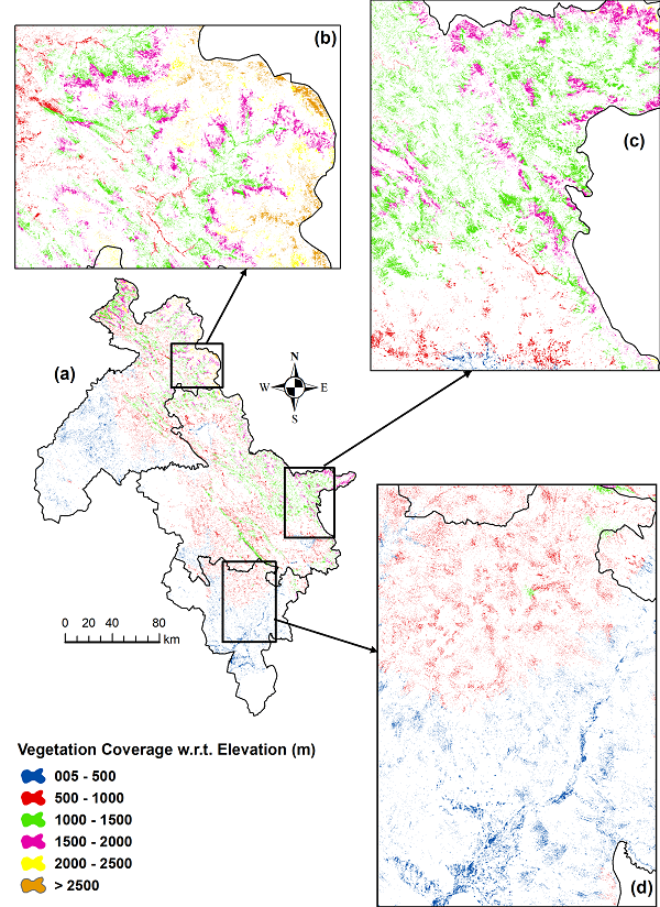 * Map and estimate the vegetation coverage based on the elevation (mean sea level) over whole Kurdistan Region;