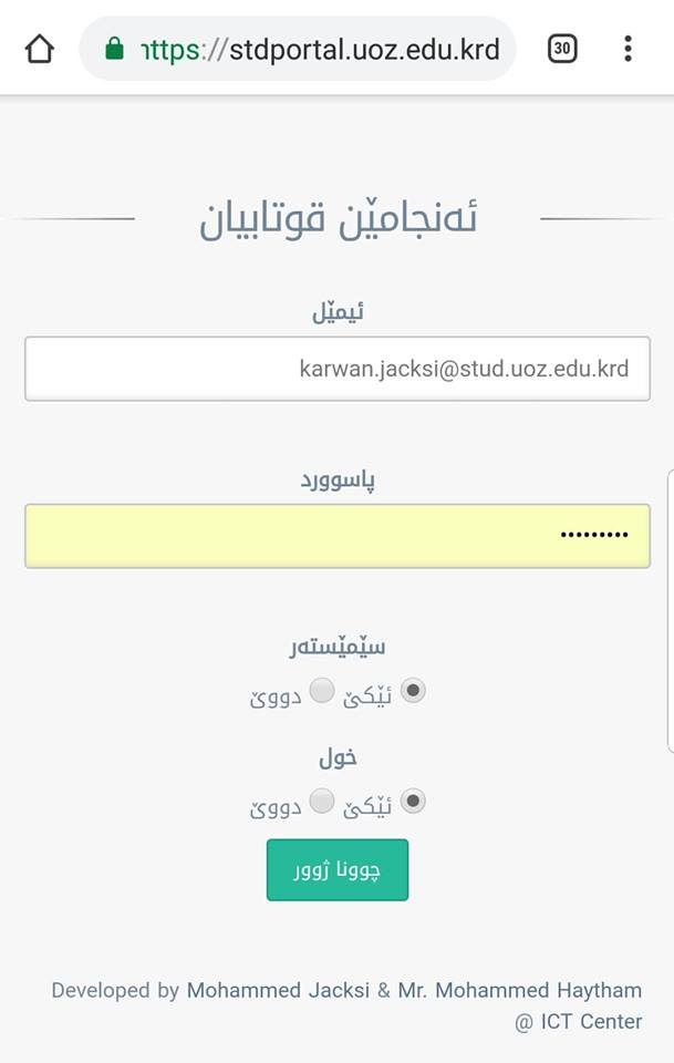 The Statistics and ICT Center at the presidency of the University of Zakho informs students of the Faculty of Humanities that tonight at 9:30 the results of the exams of the first semester will be announced. Note1: Students of the Department of English and History Department will not get their results. Note2: Students can obtain their results through their email and password.