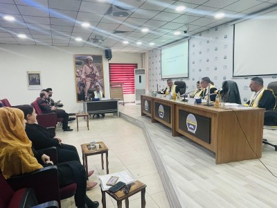 The Master thesis defense for the postgraduate student Yawer Jasim Omer was successfully held before a discussion committee on March 12, 2023. Several professors, teachers, and the head of the English Language Department along with some faculty members were attending the event. The Master's thesis was entitled “Language Disorder by Autistic Bahdini Kurdish Children” under the supervision of Assistant Professor Dr. Sanan Shero Malo. After a lively discussion between the committee and the student, Yawer J. Omer was awarded a Master's degree in English Language and Linguistics.