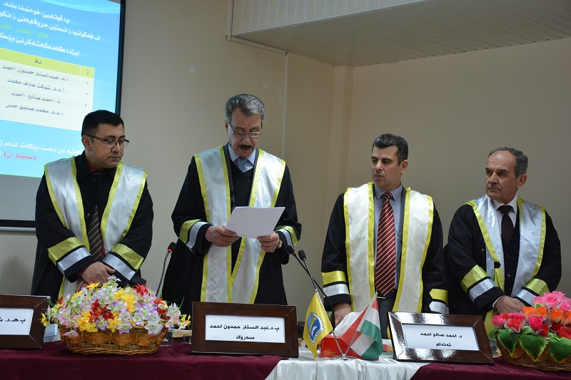 On Thursday, the 14th of January 2016, at 9:00 a.m. at the Hall of the Faculty of Humanities, the Masters Thesis Defense of Mr. Ali Omar Ali, a postgraduate student from the Department of Islamic Studies at the University of Zakho, on Economic Activities of Dhimmis (non- Muslims) in Baghdad during the First Era of the Abbasid Caliphate from 766 till 861 took place.