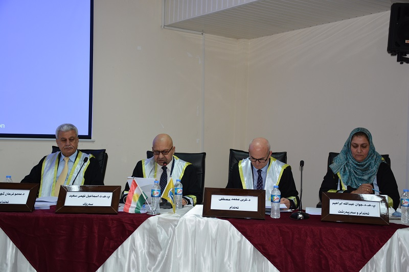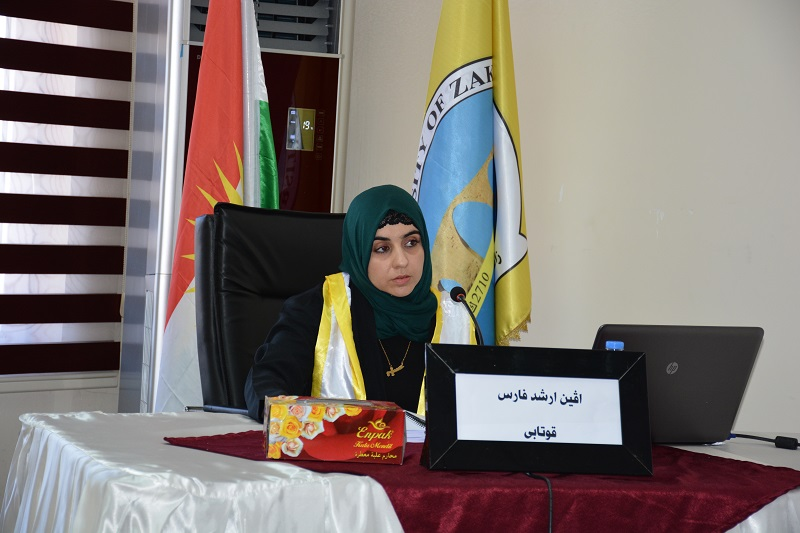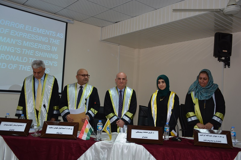 On Tuesday, the 01st of March 2016, at 9:00 a.m. at the Hall of the Faculty of Humanities, the Masters Thesis Defense of Ms. Evin Arshad Faris, a postgraduate student from the Department of English Language at the University of Zakho, on Semiotic Horror Elements as a Means of Expressing the Modern Men's Miseries in Stephen King's the Shining John Ronald Tolkiens the Lord of the Rings took place.