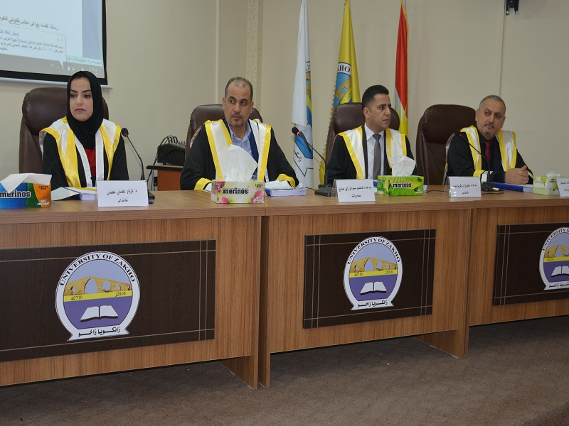 On Thursday, December 7, 2017, at 9:00 am, the master dissertation of Ms. Zaineb R. Ahmed, a student from the Department of History at the University of Zakho, was discussed at the Hall of Khalil Khayali at the Faculty of Humanities.