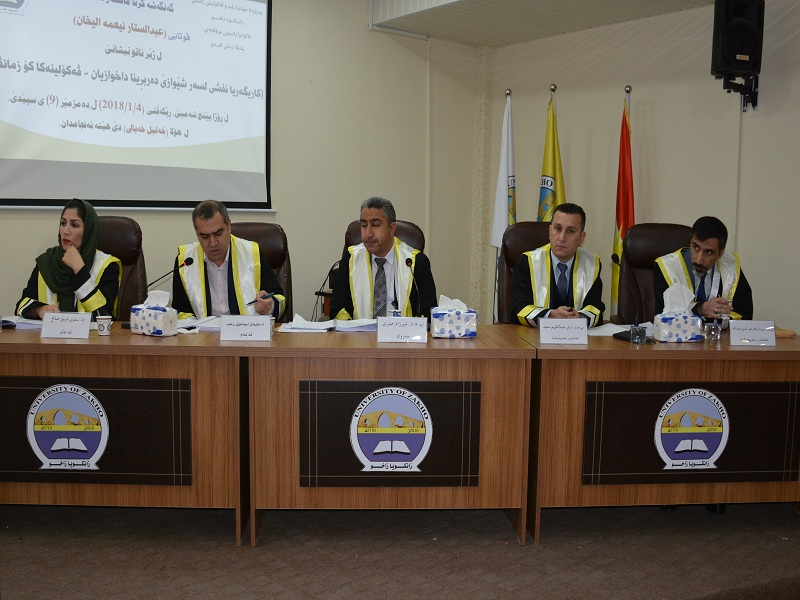 On Thursday, January 4, 2017, at 9:00 am, a master thesis of Mr. Abdul Setar N. Alikhan, a student from Kurdish Department, was discussed at the Hall of Khalil Khayali at the Fculty of Humanities at the University of Zakho.