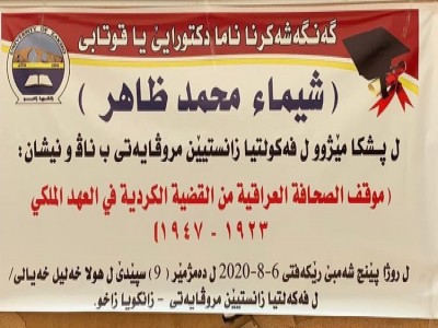 On Thursday, August 6, 2020, the doctoral thesis of Ms. Shaima Mohamed Zahir-from the Department of History was discussed. It was held at the hall of Khalil Khayali-Faculty of Humanities.